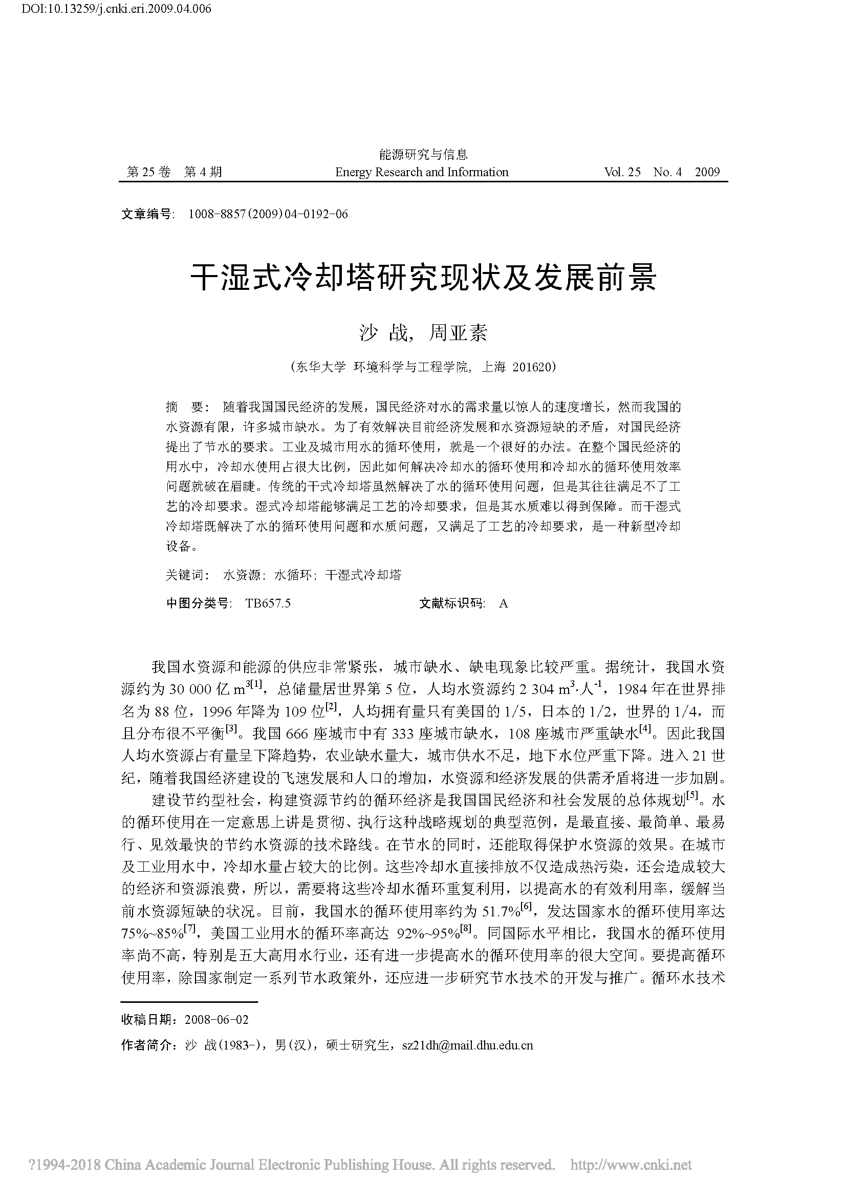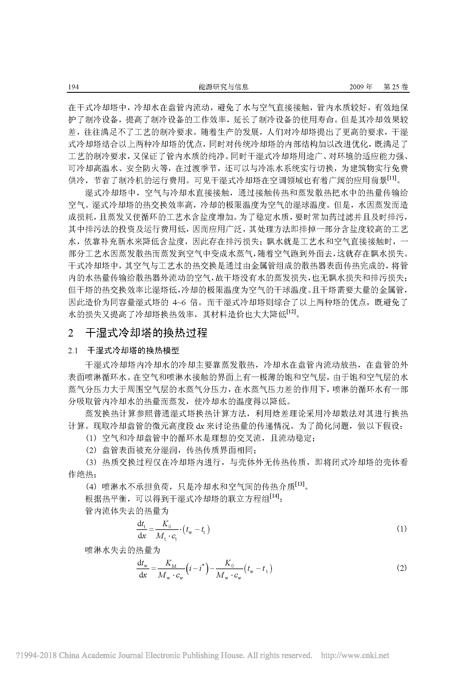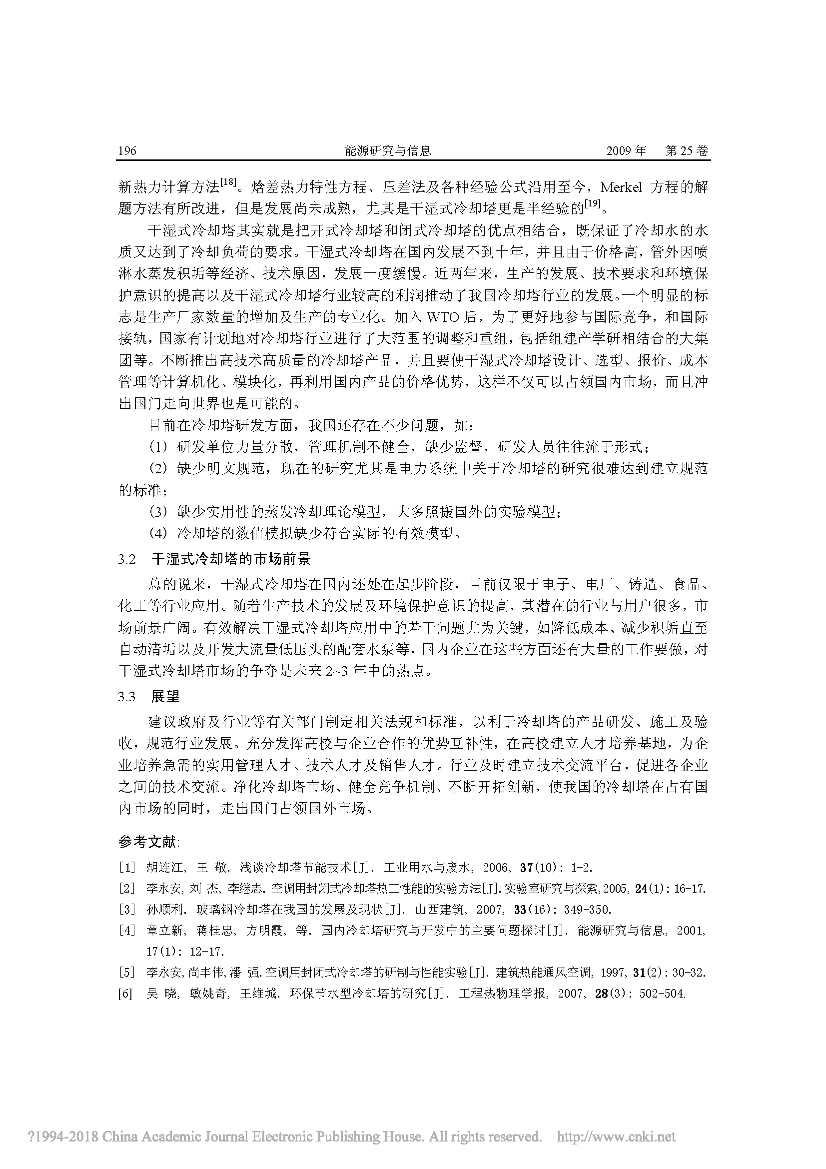 干湿式冷却塔研究现状及发展前景